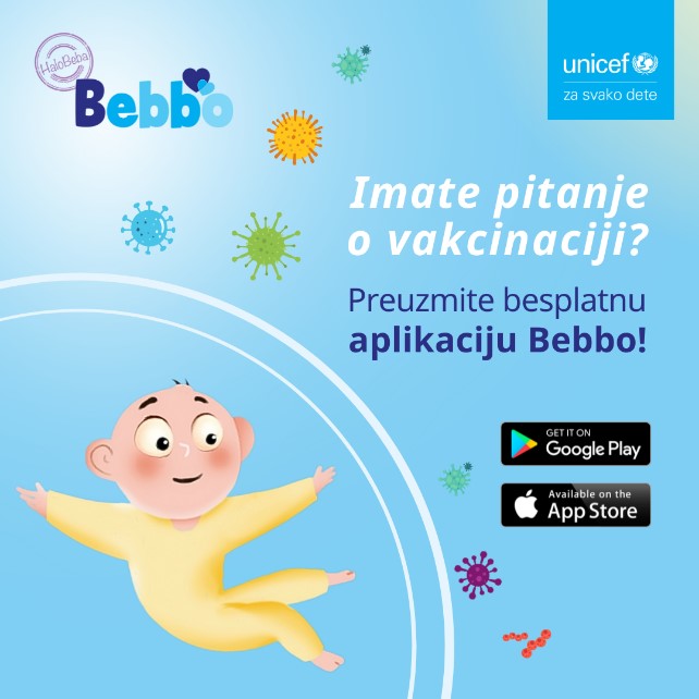 Ukoliko želite da dobijate podsetnike za vakcinaciju i pouzdane smernice o svakoj vakcini i bolesti od koje ona štiti Vaše dete, preuzmite „Bebbo” aplikaciju https://www.unicef.org/serbia/bebbo-vas-saputnik-u-roditeljstvu: