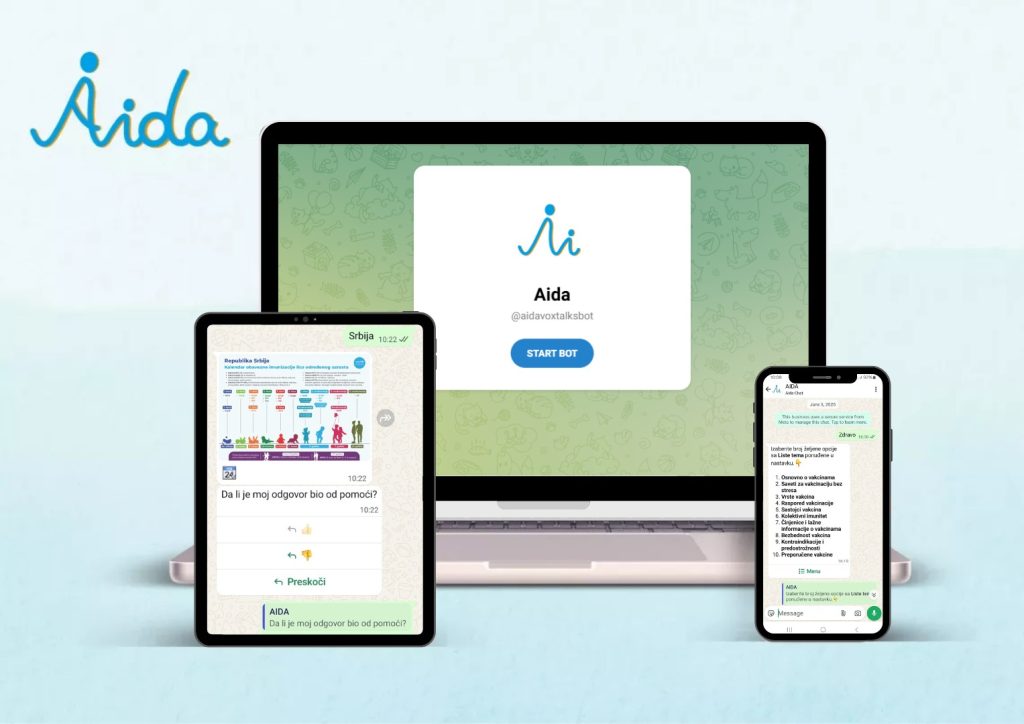Predstavljamo Vam četbot „AIDA“ sa kojim možete da ćaskate o imunizaciji i koji može da Vam pruži proverene savete na tu temu, relevantne za Evropu i Centralnu Aziju.